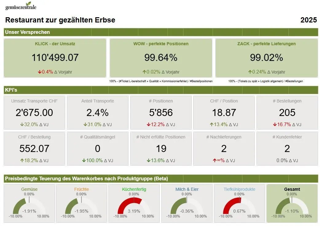 Wir haben alle Daten unserer Zusammenarbeit im vergangenen Jahr aufbereitet. In der Auswertung sehen Sie alle relevanten Daten im Vergleich zu den Vorjahreswerten. Hier ein Ausschnitt eines Beispiels: